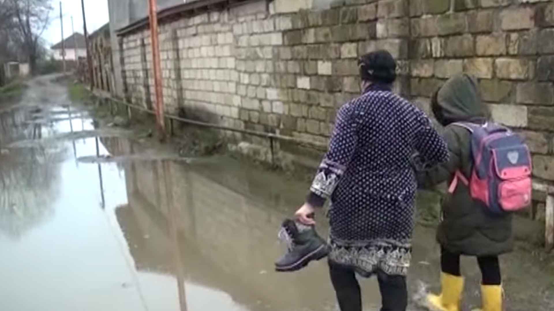 “Yeni məhəllə” adlanan ərazidə sakinlərin həyətyanı sahələrinə, küçələrə yığılıb qalan qrunt suları bir sıra problemlər yaradıb. Hətta kənddə şagirdlər dərsə getmək üçün iki ayaqqabıdan istifadə edirlər.