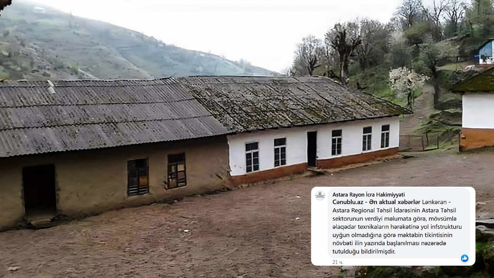 Lənkəran - Astara Regional Təhsil İdarəsinin Astara Təhsil sektorunun RİH-yə verdiyi məlumata görə, mövsümlə əlaqədar texnikaların hərəkətinə yol infrastrukturu uyğun olmadığına görə məktəbin tikintisinə növbəti ilin yazında başlanılmasının nəzərədə tutulduğu bildirilib.