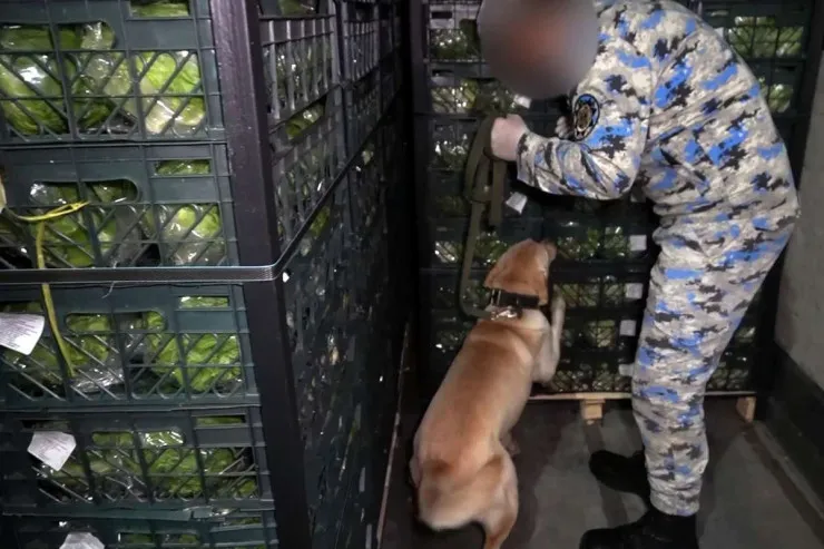 Rentgen qurğusu və kinoloji xidmət itinin tətbiqi ilə aparılan yoxlama zamanı iki paletdəki yeşiklərdə, kahı yükü ilə örtülərək gizlədilən 73 bağlamada – qablaşdırma ilə birlikdə ümumi çəkisi təqribən 29 kiloqram 100 qram olan marixuana aşkarlanıb.