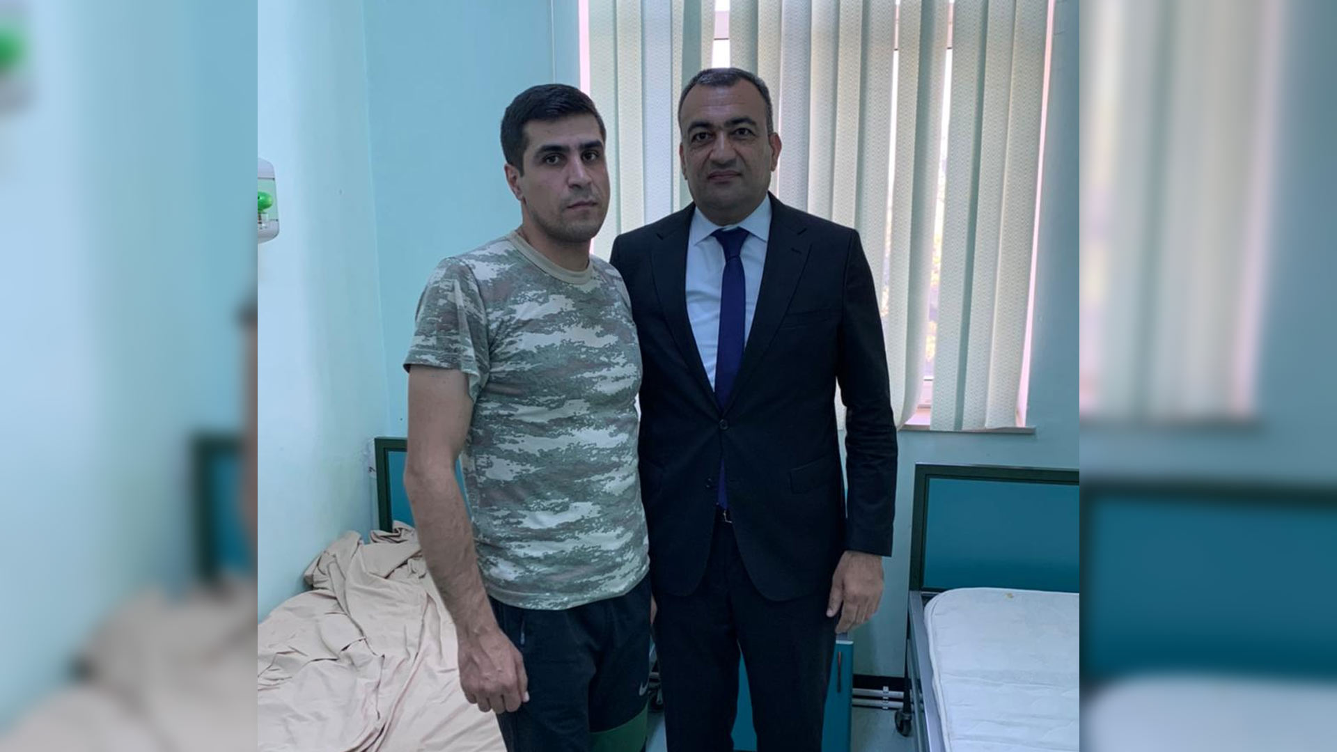 Ermənistan ordusunun Azərbaycan-Ermənistan dövlət sərhədində sentyabrın 12-si gecə və 13-ü səhər saatlarında törətdiyi genişmiqyaslı təxribatın qarşısı alınarkən yaralanan hərbçimiz Həsənov Elnur Elçin oğlu Lənkəran ŞİH başçısının müavini Vüqar Məmmədov tərəfindən Bakı şəhərində müalicə aldığı hərbi hospitalda ziyarət olunub.