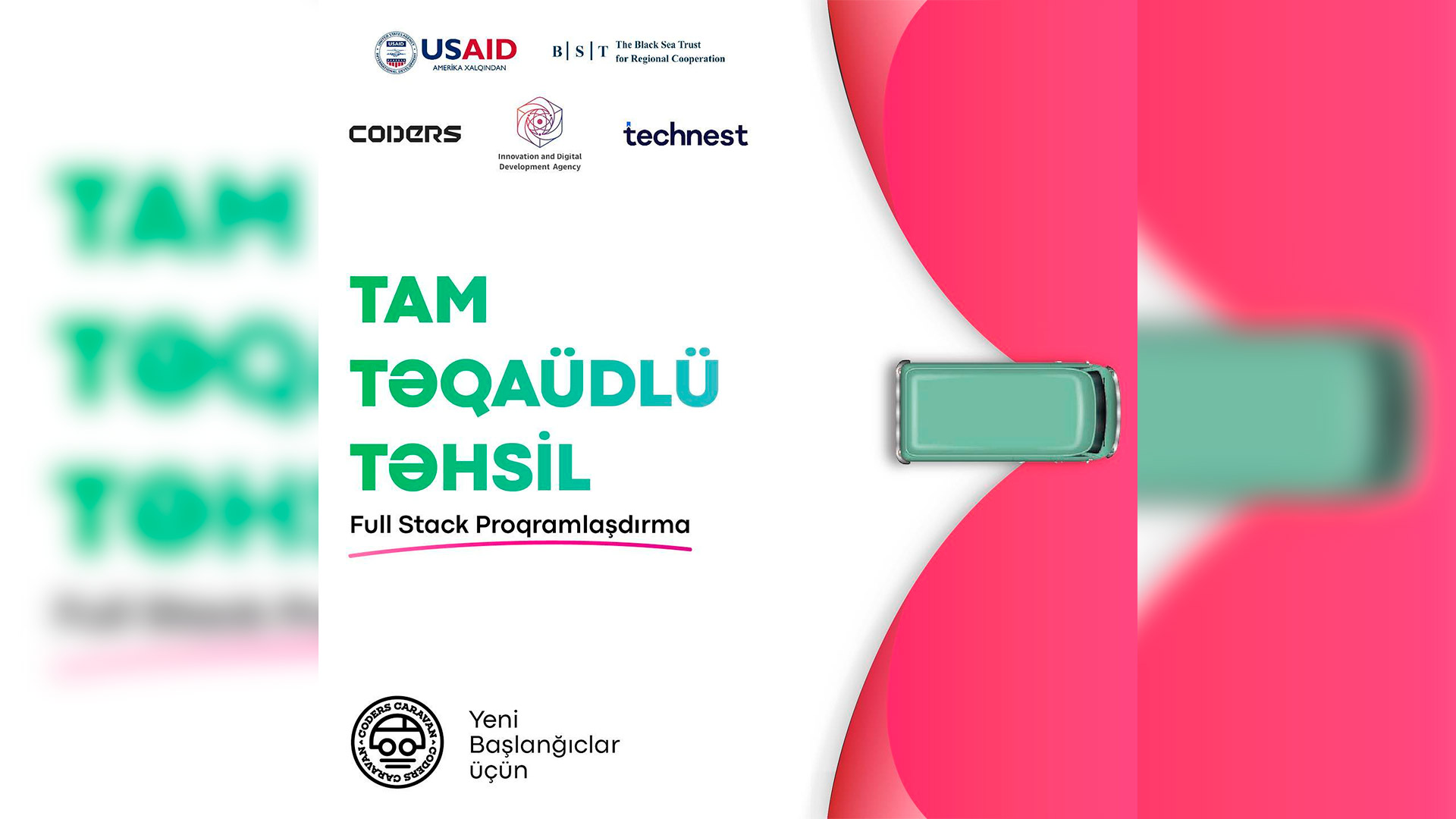 USAID, Coders Azerbaijan, Qara Dəniz Əməkdaşlıq Fondu, İnnovasiya və Rəqəmsal İnkişaf Agentliyinin Technest Təqaüd proqramının birgə təşkilatçılığı ilə keçiriləcək layihəyə seçilmiş iştirakçılar 7 ay boyunca həftəiçi hər gün, hər dərs 3 saat olmaqla Full Stack təlimlərində iştirak edəcəklər. Təlimlər nəzəri və praktiki əsaslarda 2 təlimçi və 4 mentor vasitəsilə baş tutacaq. Dərslər onlayn şəkildə xüsusi “Coders Online” metodu vasitəsilə həyata keçiriləcək.