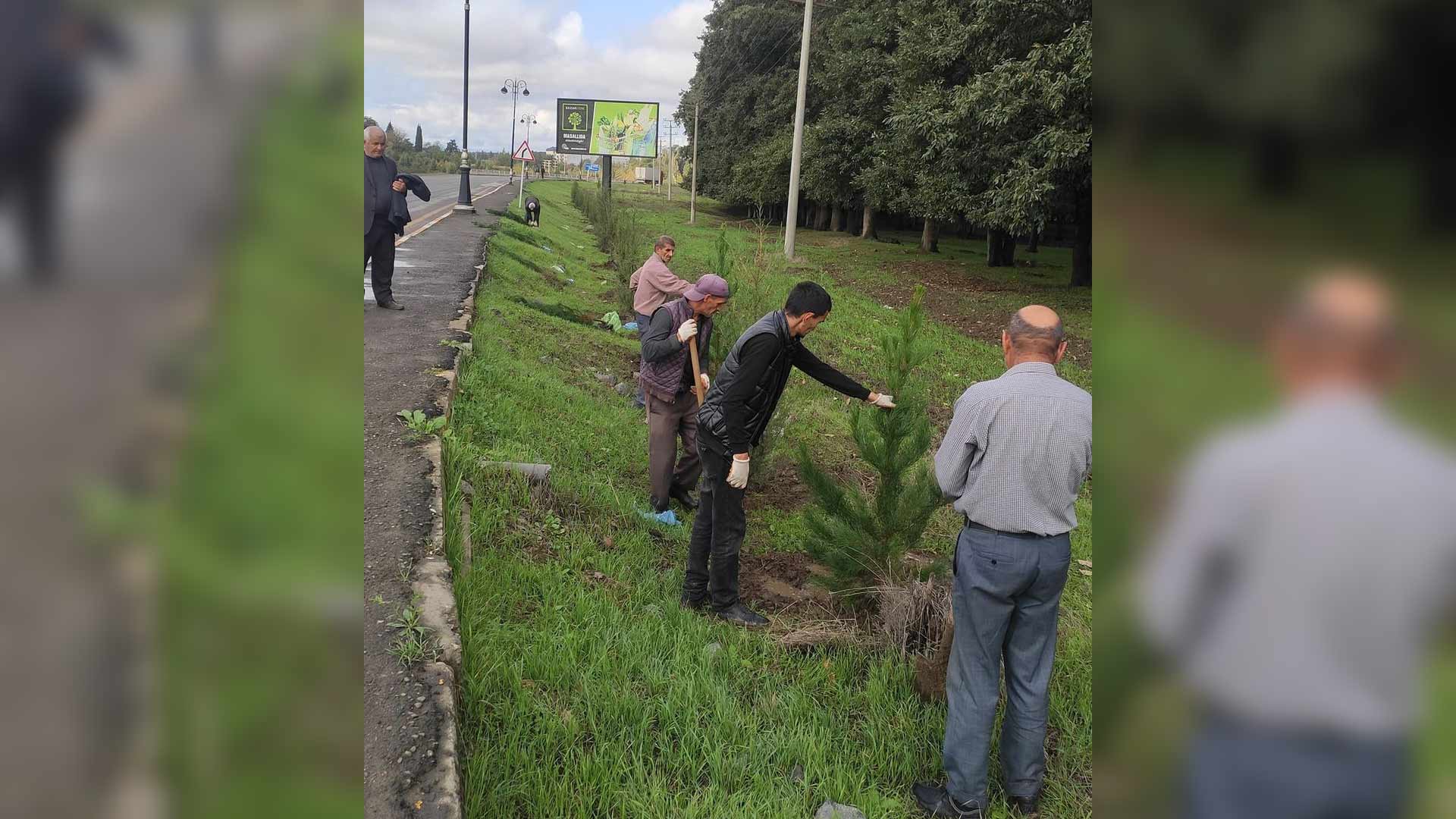 Belə ki, şəhərini girişində, H.Hacılı yolunun sağ və sol hissəsində Giparis və Eldar şamı ağacları əkilib.