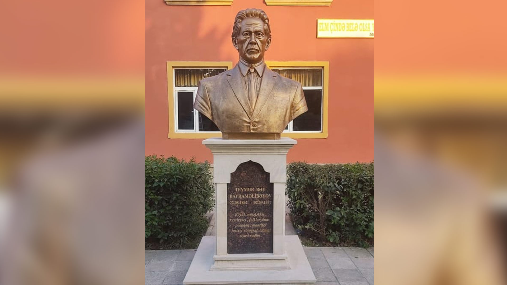 Masallı rayonu 2 saylı Yeddioymaq kənd məktəbinin həyətində böyük mütəfəkkir, folklorşünas, pedaqoq, tarixçi-etnoqraf, ictimai-siyasi xadim Teymur bəy Bayraməlibəyovun büstü ucaldılıb. Bu haqda məlumatı Cenublu.az bu gün, 20 sentyabr tarixində Asiya.az-ın Facebook səhifəsinə istinadən verir.