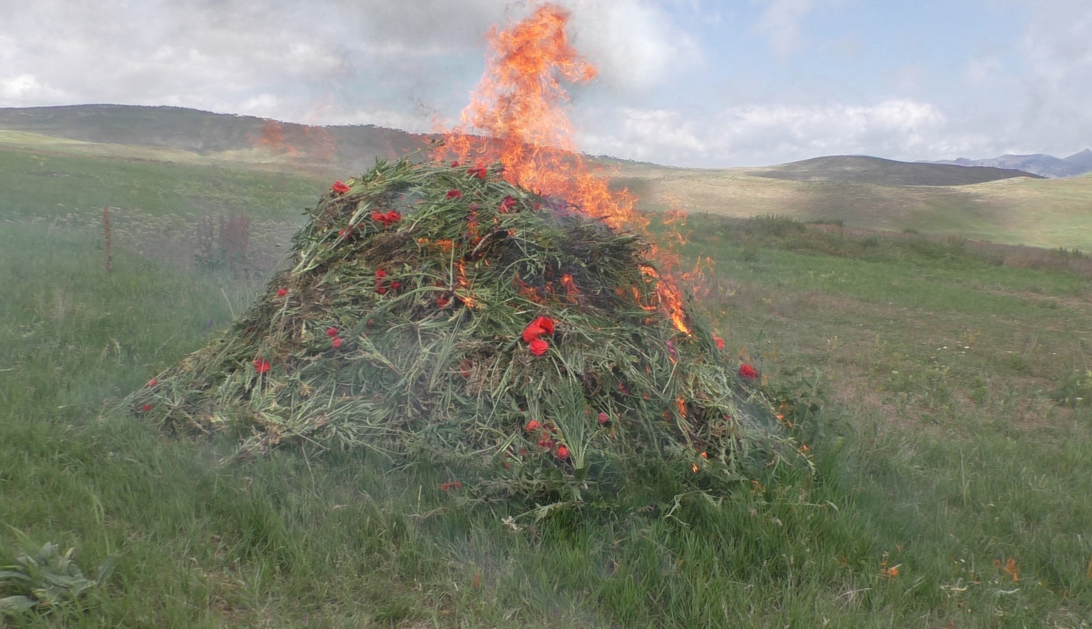 Ümumi çəkisi 1650 kiloqram olan 9200 ədəd xaş-xaş kolu yandırılaraq məhv edilib.