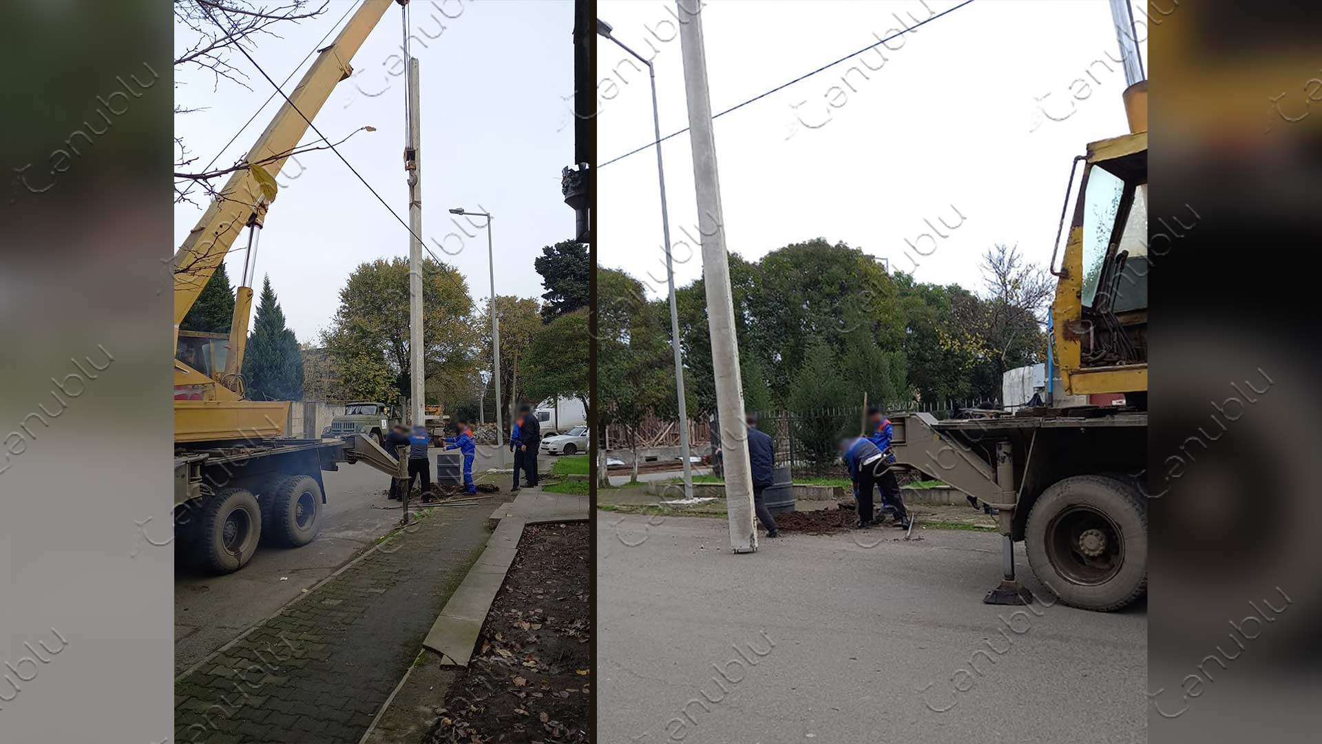 İşlər Tibb Kollecinin qarşısında olan, Tofiq İsmayılov küçəsinə çıxan yolda görülür. Aidiyyəti qurumların əməkdaşları tərəfindən yerə işıq dirəkləri bərkidilir.