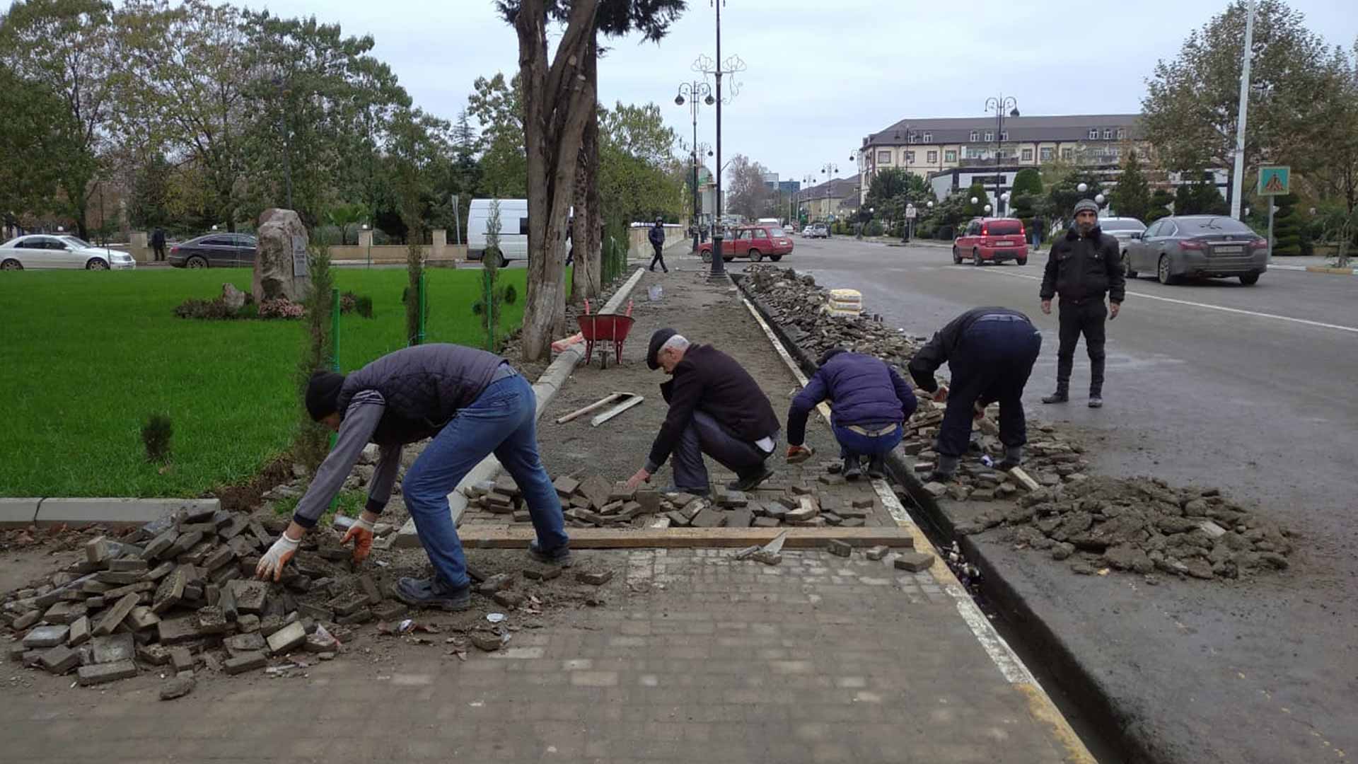 Bərpa işləri şəhərin Qarabağ küçəsində görülür. Piyadalar üçün nəzərdə tutulmuş səki təmir olunur. Yerdəki köhnə tamet daşlar yenisi ilə əvəzlənir.