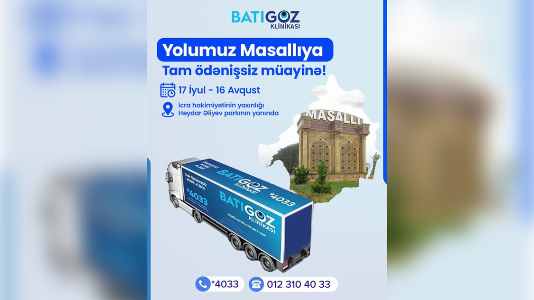 “Batıgöz” klinikasının səyyar xidməti Masallı İcra Hakimiyyətinin yaxınlığında, Heydər Parkının yanında sakinlərin ödənişsiz xidmətində olacaq. Bu haqda məlumatı Cenublu.az bu gün, 18 iyul tarixində verir.