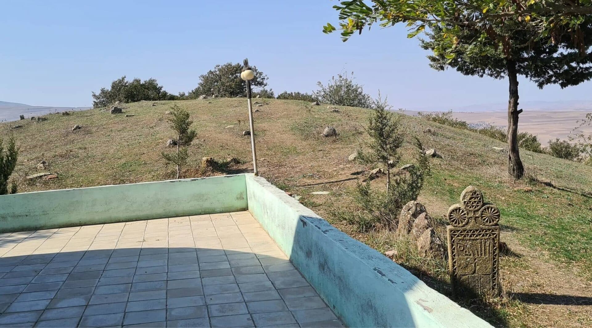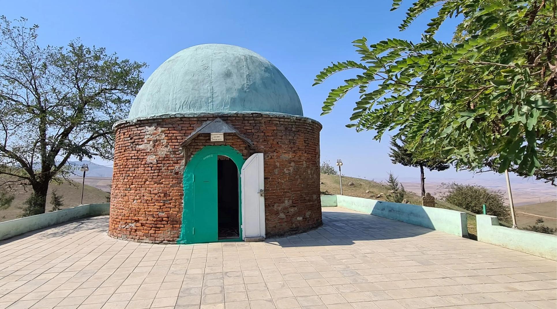 Türbənin içərisindəki məzarın baş tərəfində yarı sınmış daşın üzərində bütöv olmayan ərəb qrafikalı yazı həkk edilib.