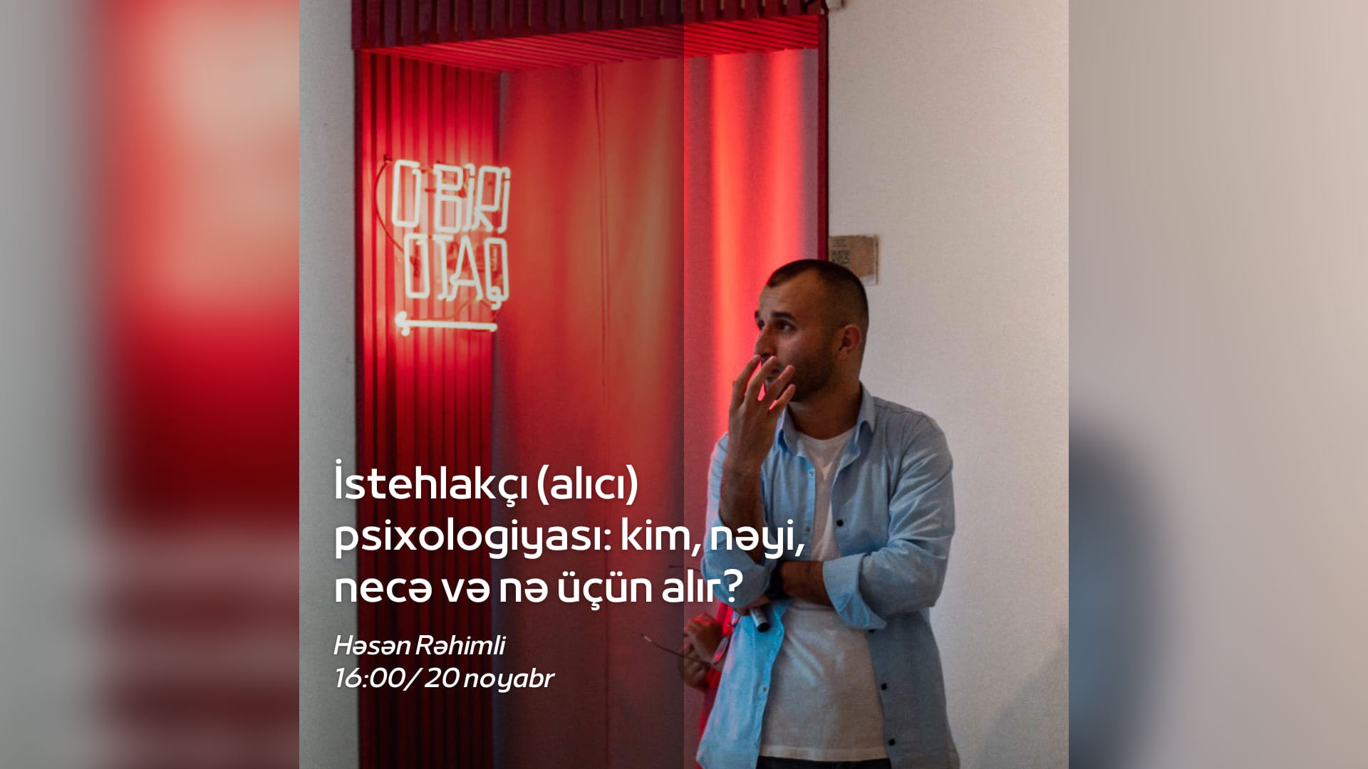 Lənkəranda yerləşən “O biri otaq”da gənclərlə “İstehlakçı (alıcı) psixologiyası: kim, nəyi, necə və nə üçün alır?” mövzusunda görüş keçiriləcək. Bu haqda məlumatı Cenublu.az bu gün, 16 noyabr tarixində verir.