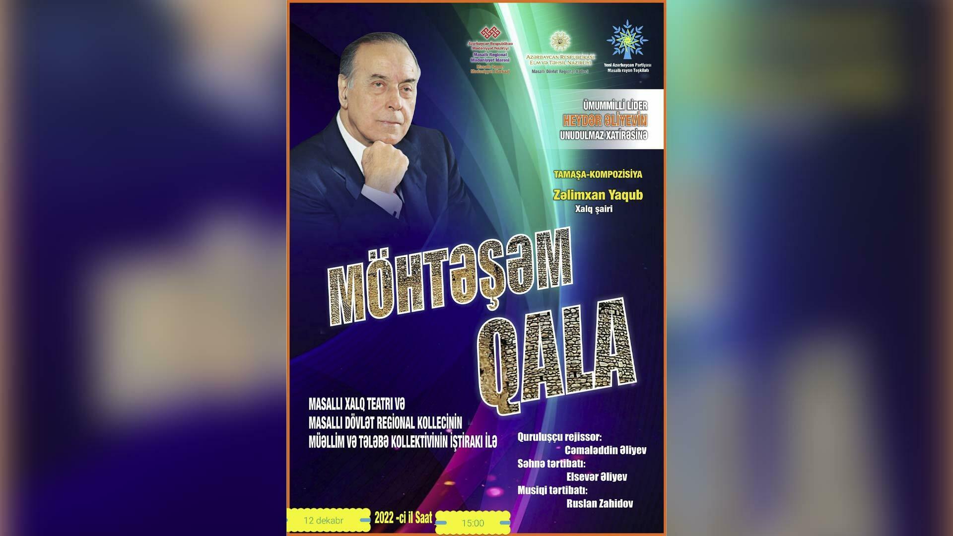 Masallıda ulu öndər Heydər Əliyevin xatirəsinə həsr edilmiş tamaşa kompozisiyası nümayiş olunacaq. Bu haqda bu gün, 9 dekabr tarixində Cenublu.az Masallı Regional Mədəniyyət İdarəsinə istinadən xəbər verir.
