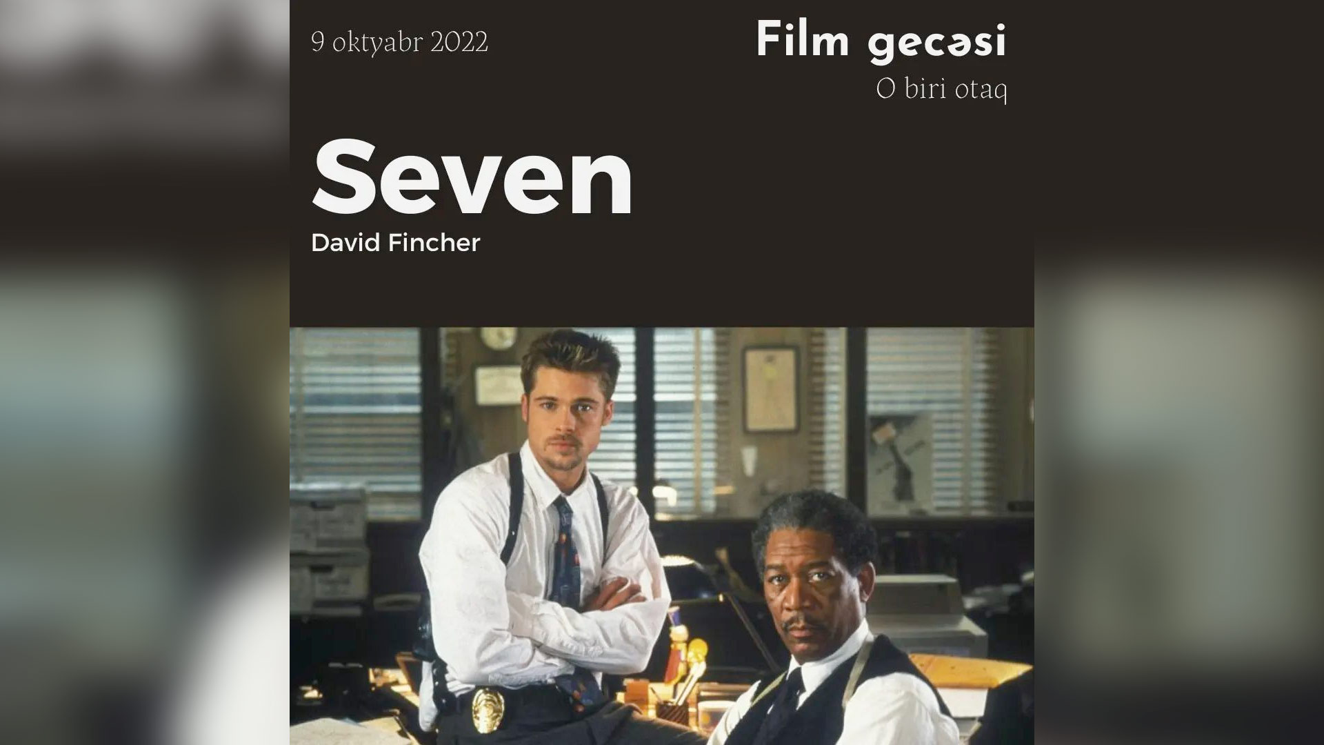 Belə ki, bu dəfə qonaqlara “Seven” filmi nümayiş olunacaq. Film xristianlığın 7 ölümcül günahını törədənləri öz qəddar üsulları ilə öldürən qatil və onu təqib edən iki polis detektivi haqqındadır. Baş rolları Bred Pitt və Morqan Frimen bölüşürlər.