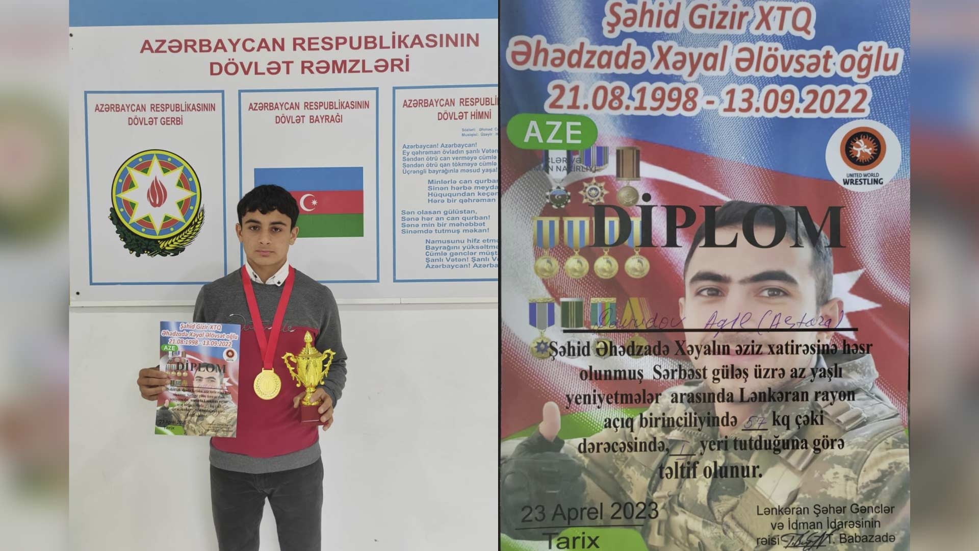 Səməd Vurğun adına Təngərüd kənd tam orta məktəbinin IX sinif şagirdi Davudov Aqil Qabil oğlu Şəhid Əhədzadə Xəyal Əlövsət oğlunun əziz xatirəsinə həsr olunmuş sərbəst güləş turnirində iştirak edib. 57 kq çəki dərəcəsində mübarizə aparan idmançımız qızıl medal və diplomla təltif olunub.
