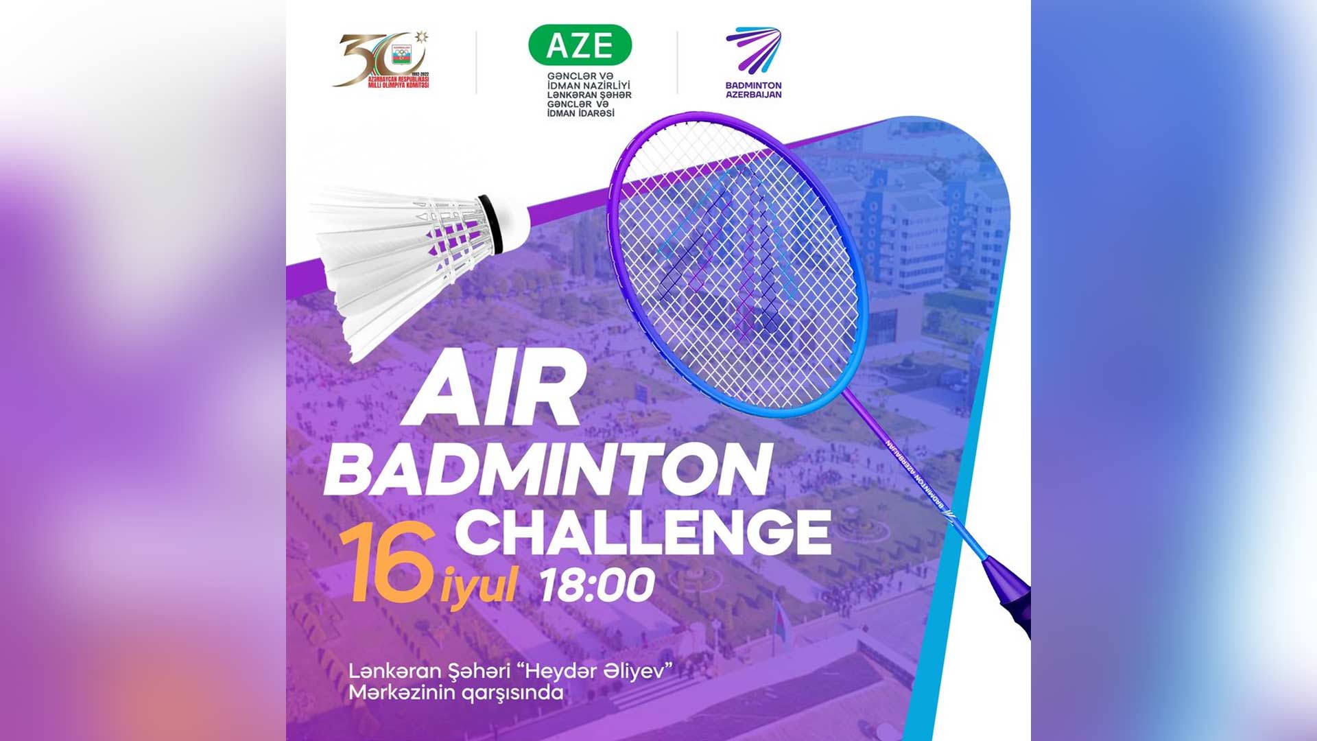 Belə ki, 16 iyul saat 18:00-da keçiriləcək "AirBadminton Challenge" Lənkəran şəhəri Heydər Əliyev Mərkəzinin önündə baş tutacaq.