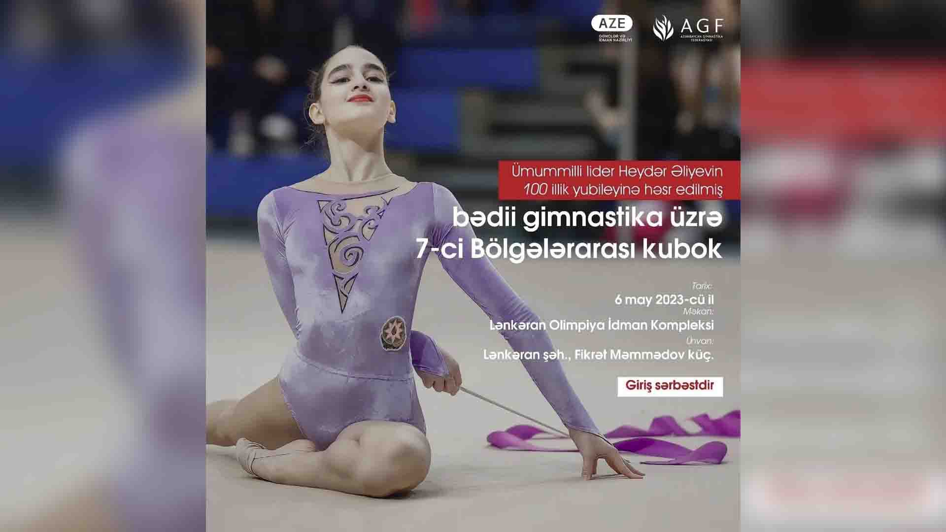 Ümummilli Lider Heydər Əliyevin 100 illik yubileyinə həsr olunmuş bədii gimnastika üzrə 7-ci bölgələrarası kubok yarışı 6 may 2023-cü il tarixində baş tutacaq. Giriş sərbəstdir.