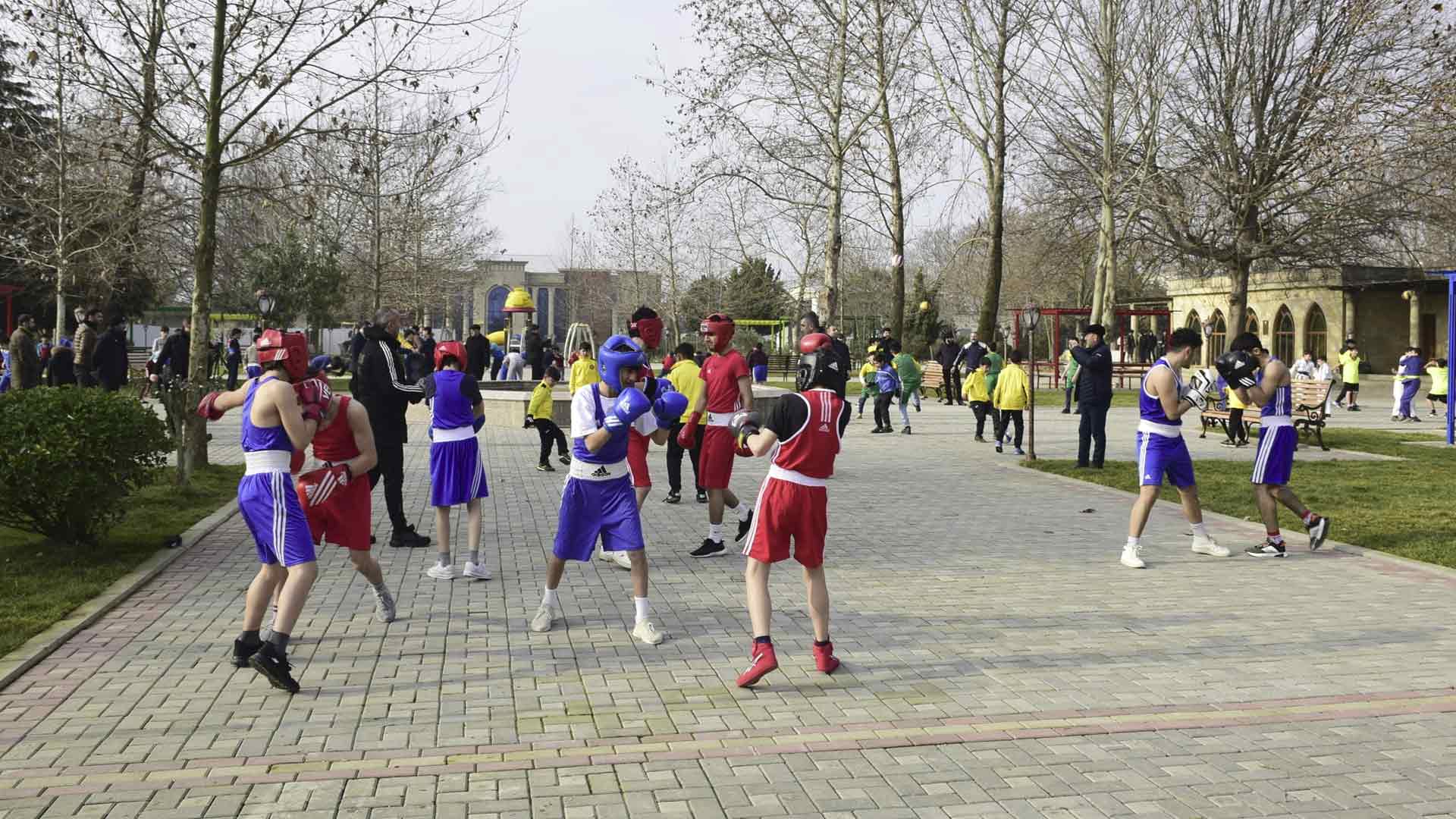 Heydər Əliyev parkında 2 fevral - Azərbaycan Gəncləri Günü münasibətilə “Gənclər həftəsi” çərçivəsində keçirilən idman festivalında iştirakçılar cüdo, taekvondo, boks, güləş, voleybol və futbol idman növlərində bacarıqlarını göstəriblər. Həmçinin idmançılar, məşqçi-müəllimlər və şəhər sakinləri Heydər Əliyev adına parkında yeni yaradılmış idman qurğularından istifadə ediblər.