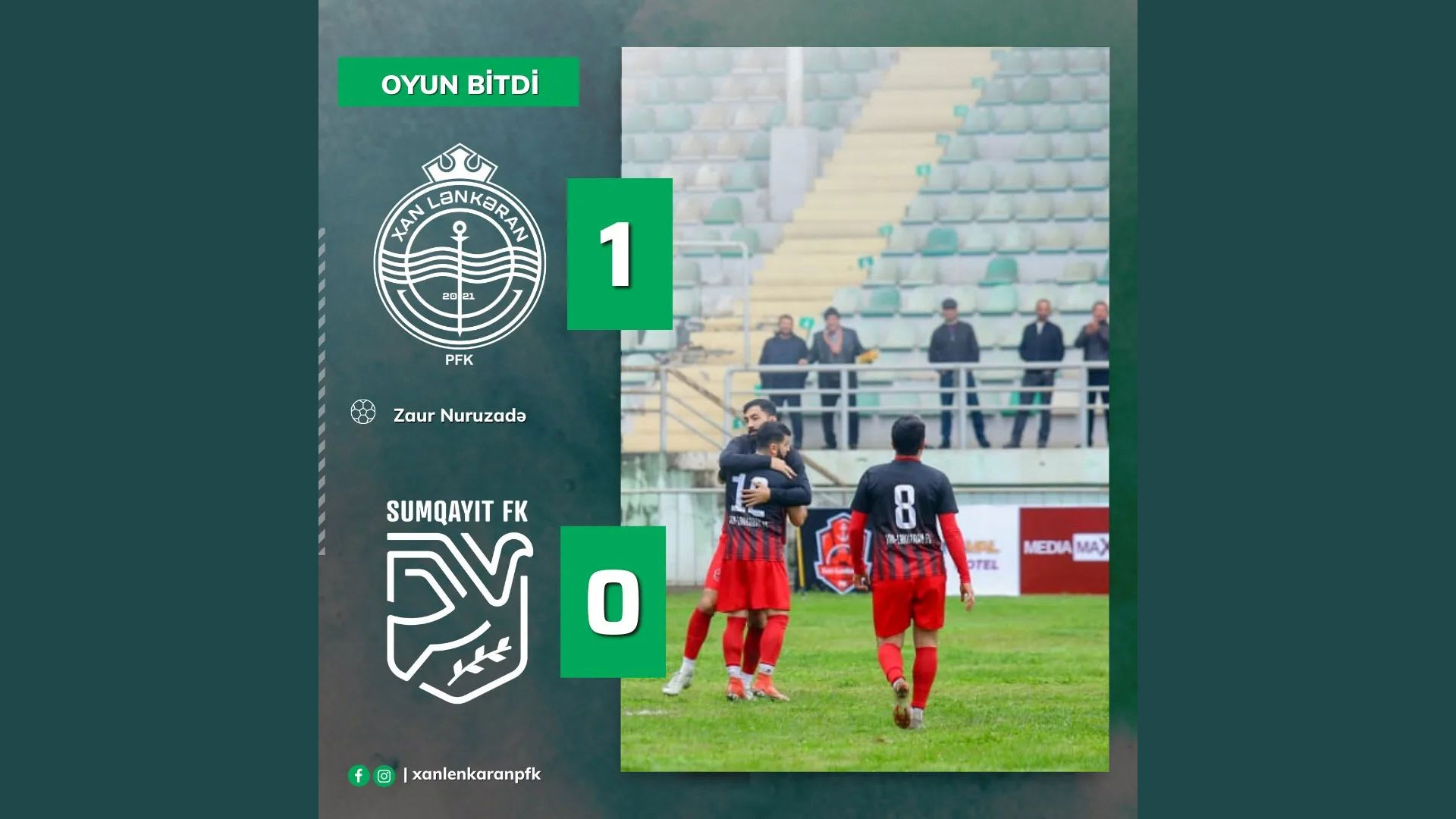 Lənkəran Olimpiya Kompleksində baş tutan oyunda klubumuz Sumqayıt-2 ilə qarşılaşıb. Xan Lənkəranın üstünlüyü ilə keçən oyunda, klubumuz 1:0 hesabı ilə qalib gəlib. Oyunda yeganə qolu Zaur Nuruzadə Sumqayıt təmsilçisinin qapısından keçirib.