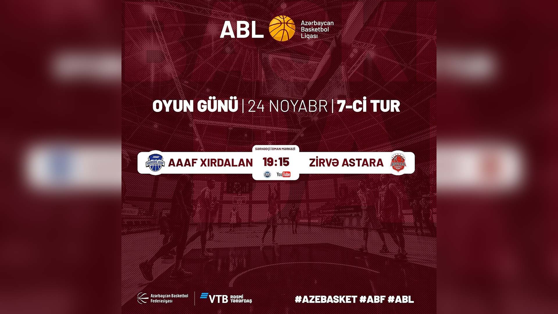 Təmsilçimiz Azərbaycan Basketbol liqasında “AAAF Xırdalan” klubu ilə qarşılaşacaq. Oyun 24 noyabr 19:15-də Sərhədçi İdman Olimpiya Mərkəzində baş tutacaq.