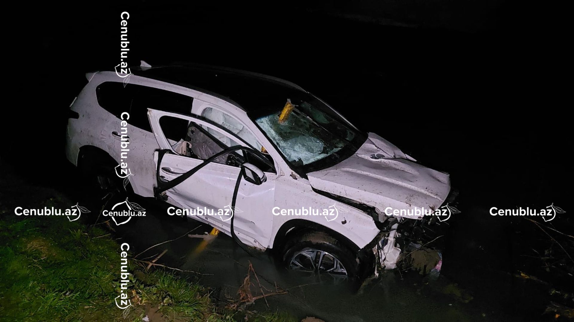 Güclü zərbənin təsirindən körpünün dəmir konstruksiyaları zədələnib və avtomobil təxminən 20 metr hündürlükdən çaya düşüb.