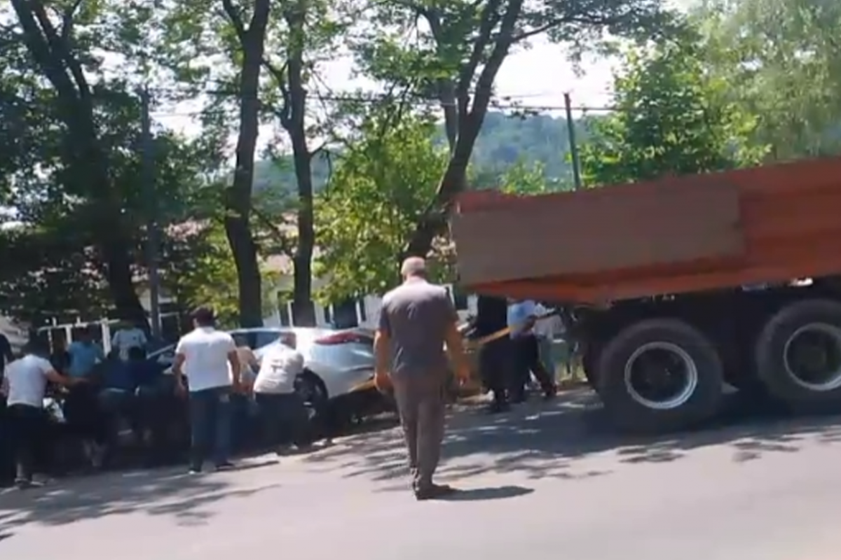 Avtomobilin kanaldan çıxarılması üçün əraziyə xüsusi texnika cəlb olunub.